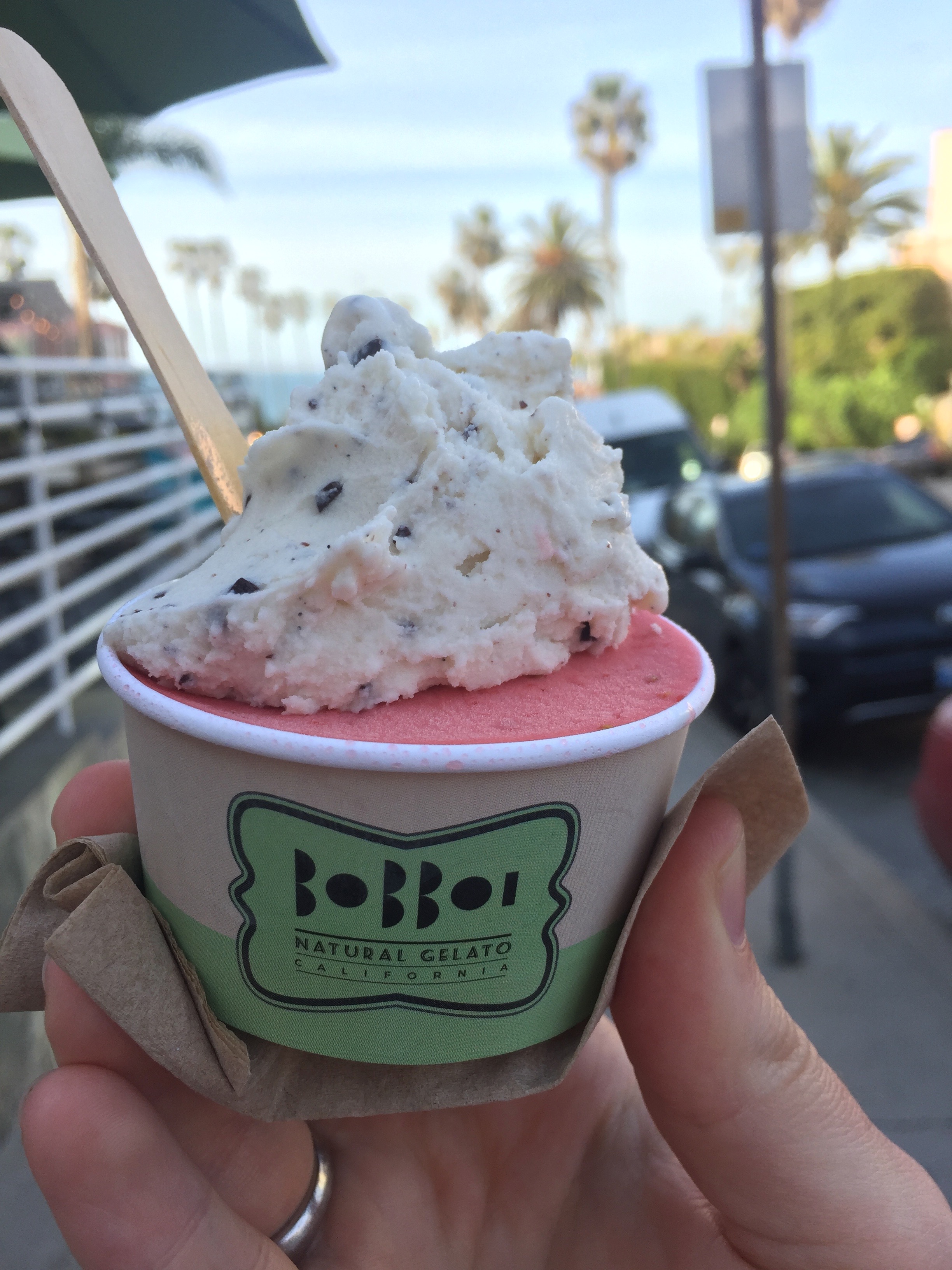 Friday March 29, 2019. Bobboi Natural Gelato. La Jolla, San Diego. My friends said this is a not-to-miss Gelateria, so I got one here despite going for dinner immediately after. My classic stracciatella and strawberry in a cup lived up to expectations. The view of the beach certainly didn’t hurt.