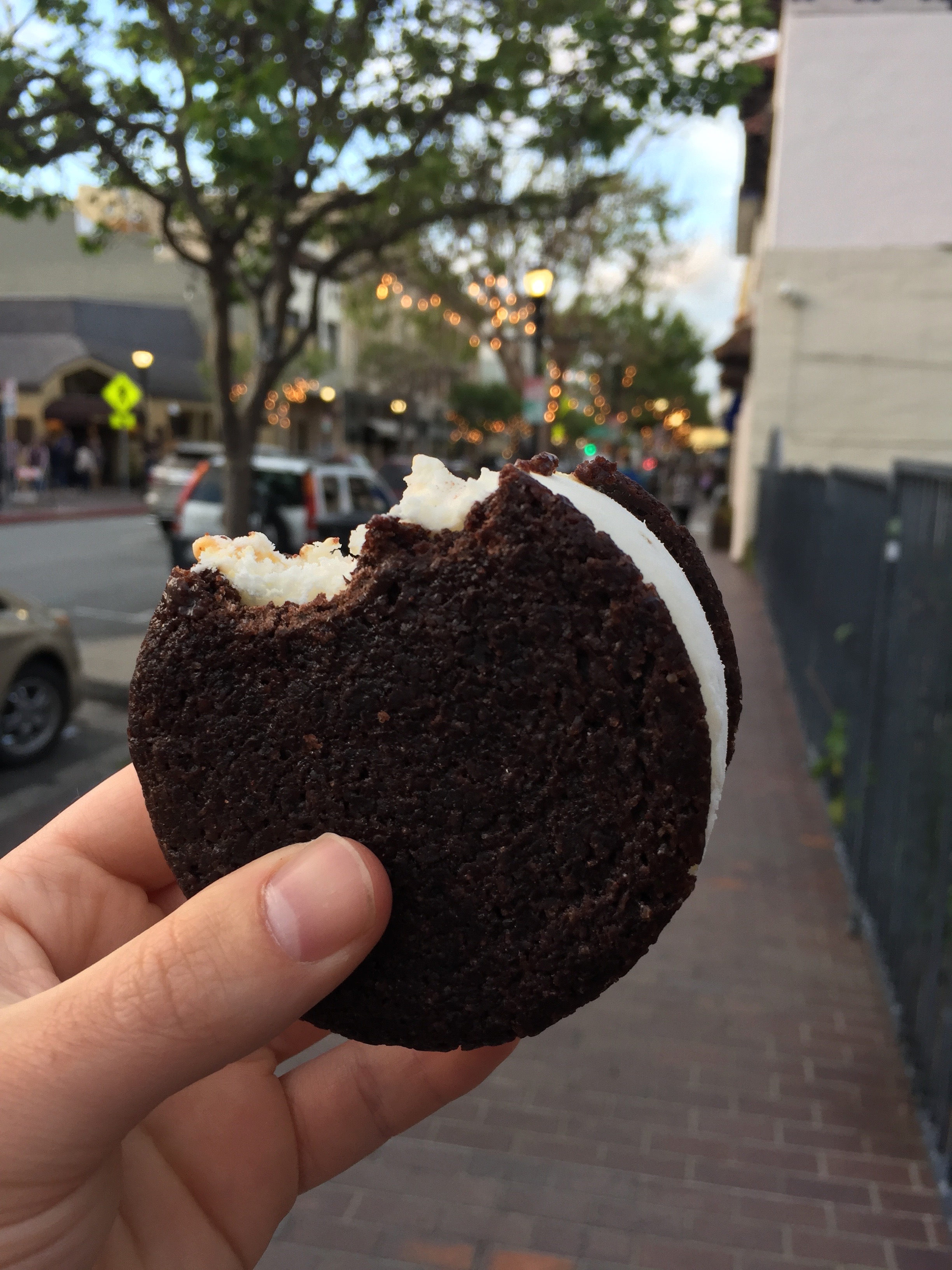 Friday April 5, 2019. Revival Ice Cream. Monterey, California. While renting an e-bike at Big Sur Adventures, the clerk highly recommended I go to Revival for some premium ice cream. I got a “Bee’s Knees” ice cream sandwich. Their signature flavor combines beeswax and bee pollen with handcrafted organic custard and honeycomb candy. To my surprise, the chocolate cookie was gluten-free and I still loved it.