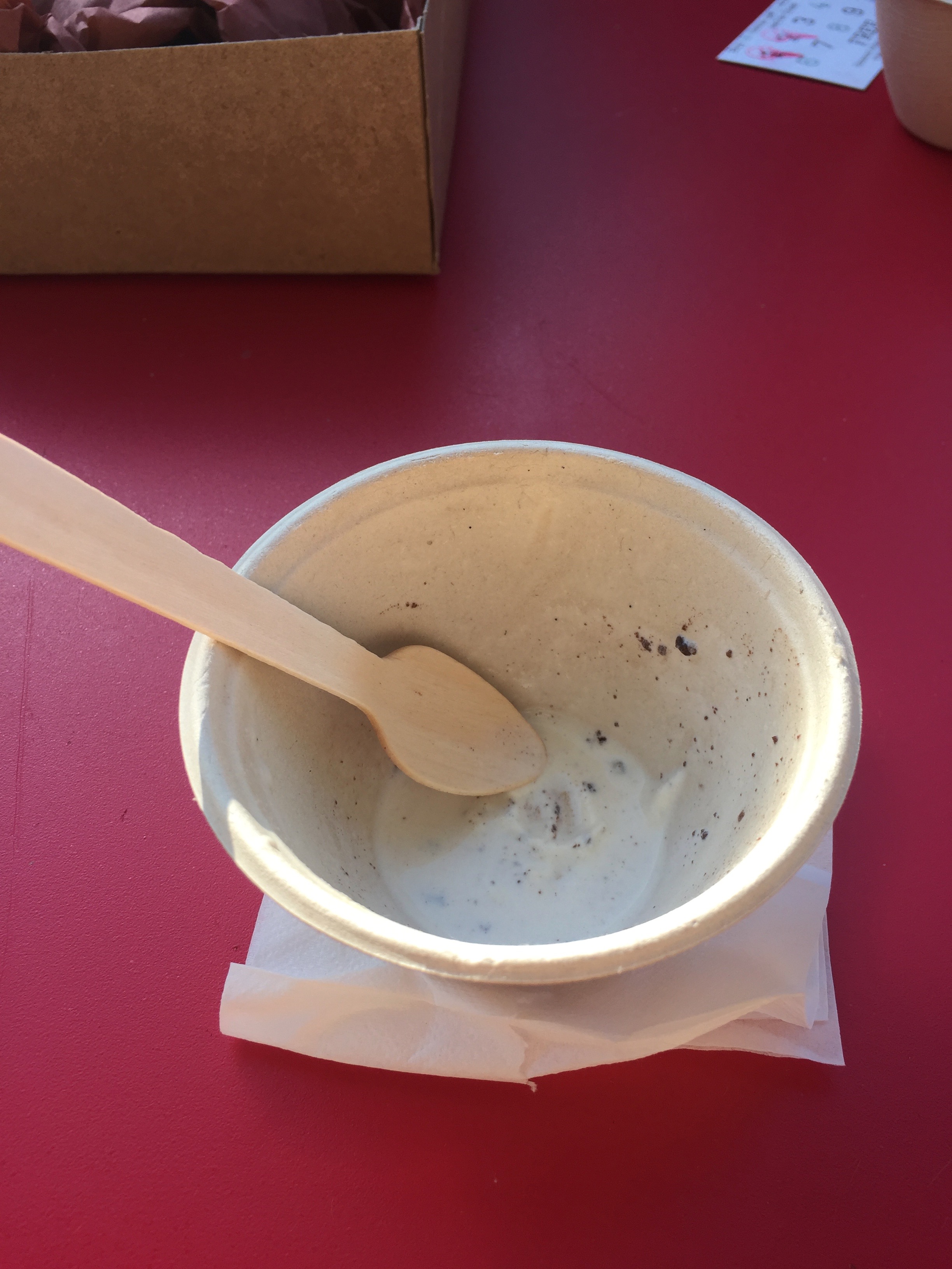 Tuesday April 9, 2019. Curbside Creamery. Temescal, Oakland. I got a scoop of bourbon whiskey vanilla, though you couldn’t tell from the photo below. It was excellent. Above average.