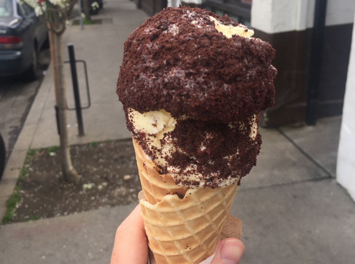 Monday April 22, 2019. Sweet Alchemy Ice Creamery. University District, Seattle. To end my trip, I got two scoops of chai tea and Aztec chocolate in a cup. It was a great way to end.