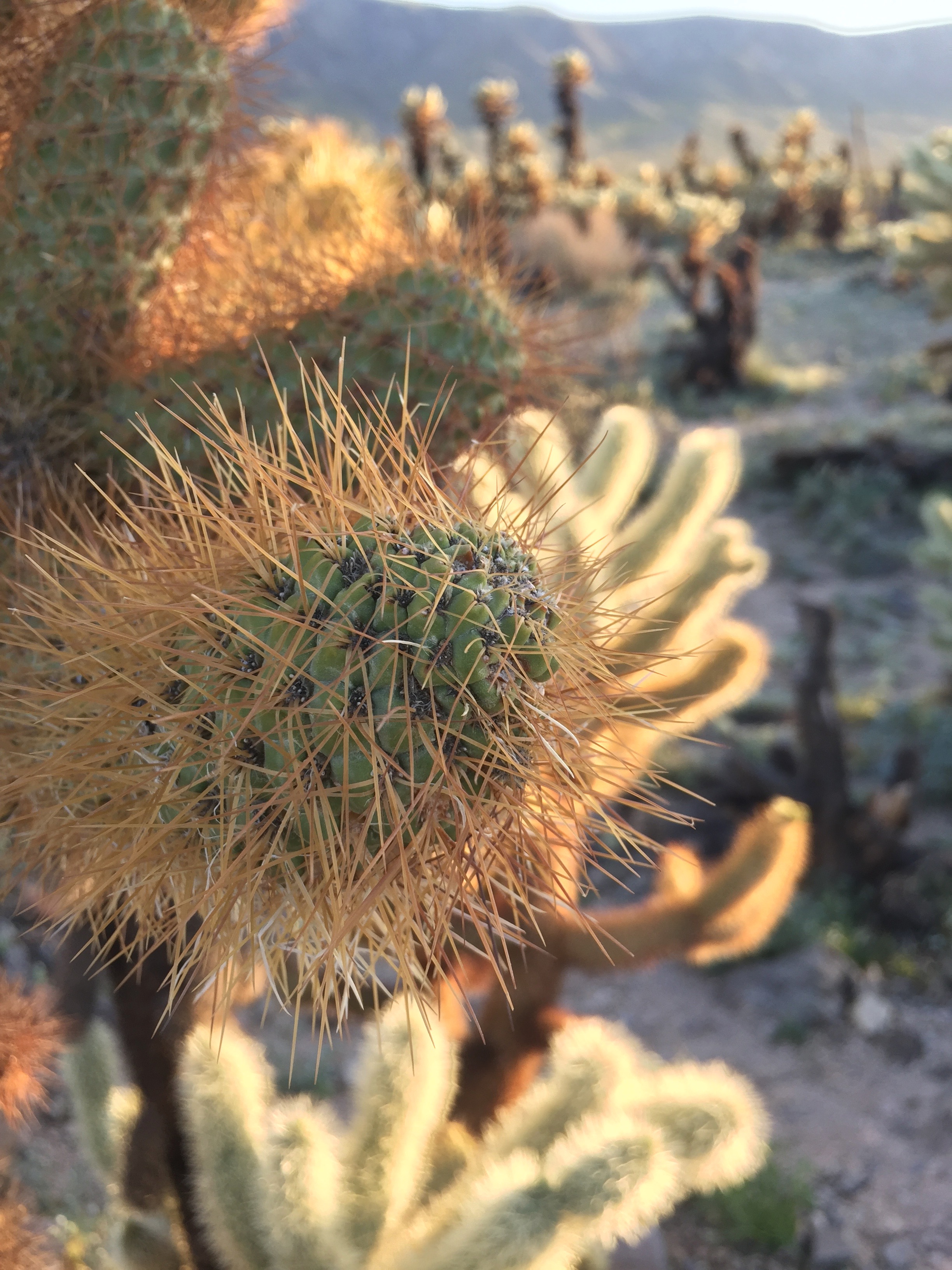 In the short walk around the garden, not only are you surrounding by these joyous, densely packed chollas, but they appear to be glowing. The sun, just over the horizon, hits the green and brown spikes on the edges in a magical way. It’s reminiscent of Pandora, the planet on Avatar where everythingiscolorfulandglowing. Remember, the movie where someone coined the term Avatar Blues, referring to depression that some people felt after seeing the it because reality was not as beautiful? That’s how stunning this garden was.