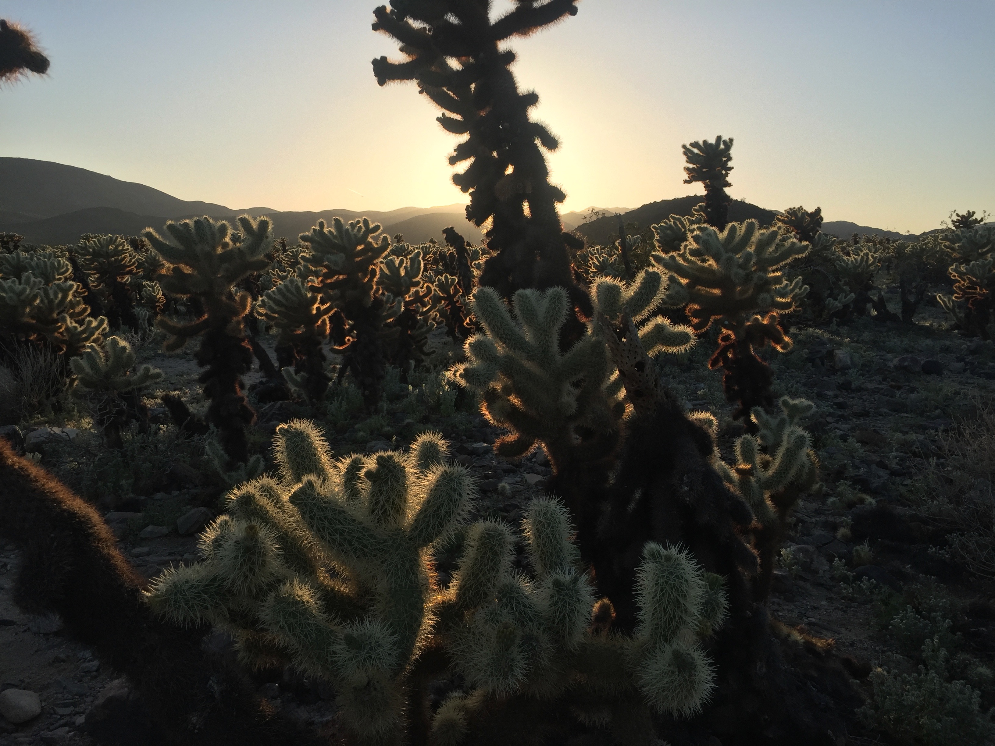 Easily the most breathtaking part of the day, I wandered the cholla garden for about half an hour until sunset. As is the innate human desire to preserve beauty, I took as many pictures as I could. My iPhone 6 camera could not do the glowing scene justice, but I did the best that I could. I’ve posted some of my favorite photos below, with a gallery underneath with all of them. Take a look, and if you ever visit Joshua Tree, definitely don’t miss the Cholla Cactus Garden an hour before sunset or an hour after sunrise.